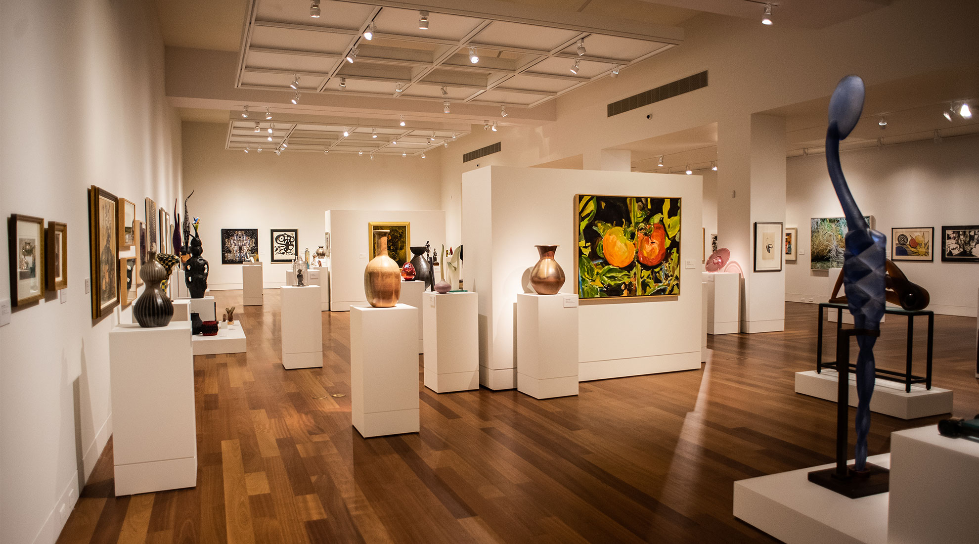Rick Beck, Lisa Clague, Christina Cordova, Jim Dine, Maud Gatewood, Susan Taylor Glasgow, Sol LeWitt, Juan Logan, Beverly McIver, Joan Miro, Robert Motherwell, Robert Rauschenberg, Seagrove Pottery, Frank Stella, Hiroshi Sueyoshi, Steffen Thomas